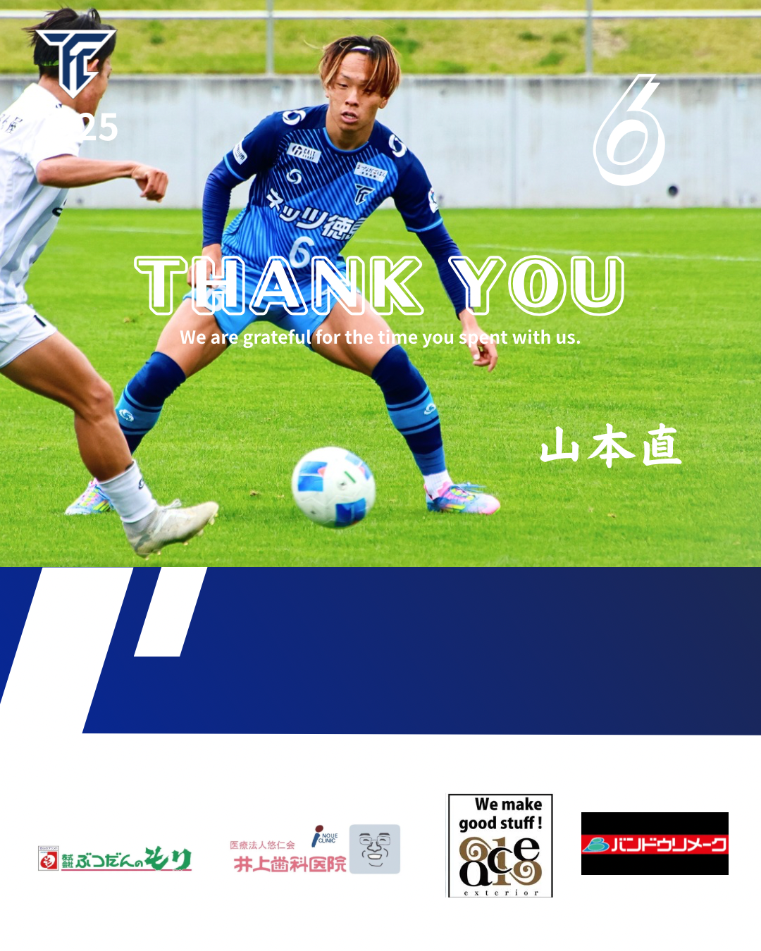 【山本直選手退団のお知らせ】 トップチーム 2025/12/28 山本直選手は契約満了に伴い2026シーズンの契約を更新しないことになりましたのでお知らせします。🔵選手コメント🔵今シーズンをもってFC徳島を退団する事になりました。たくさんの素晴らしい出会いに恵まれ、たくさんの経験をさせていただきました。ここには書ききれないほどの応援やサポートをしてくださった方々には感謝してもしきれません。本当にありがとうございました。