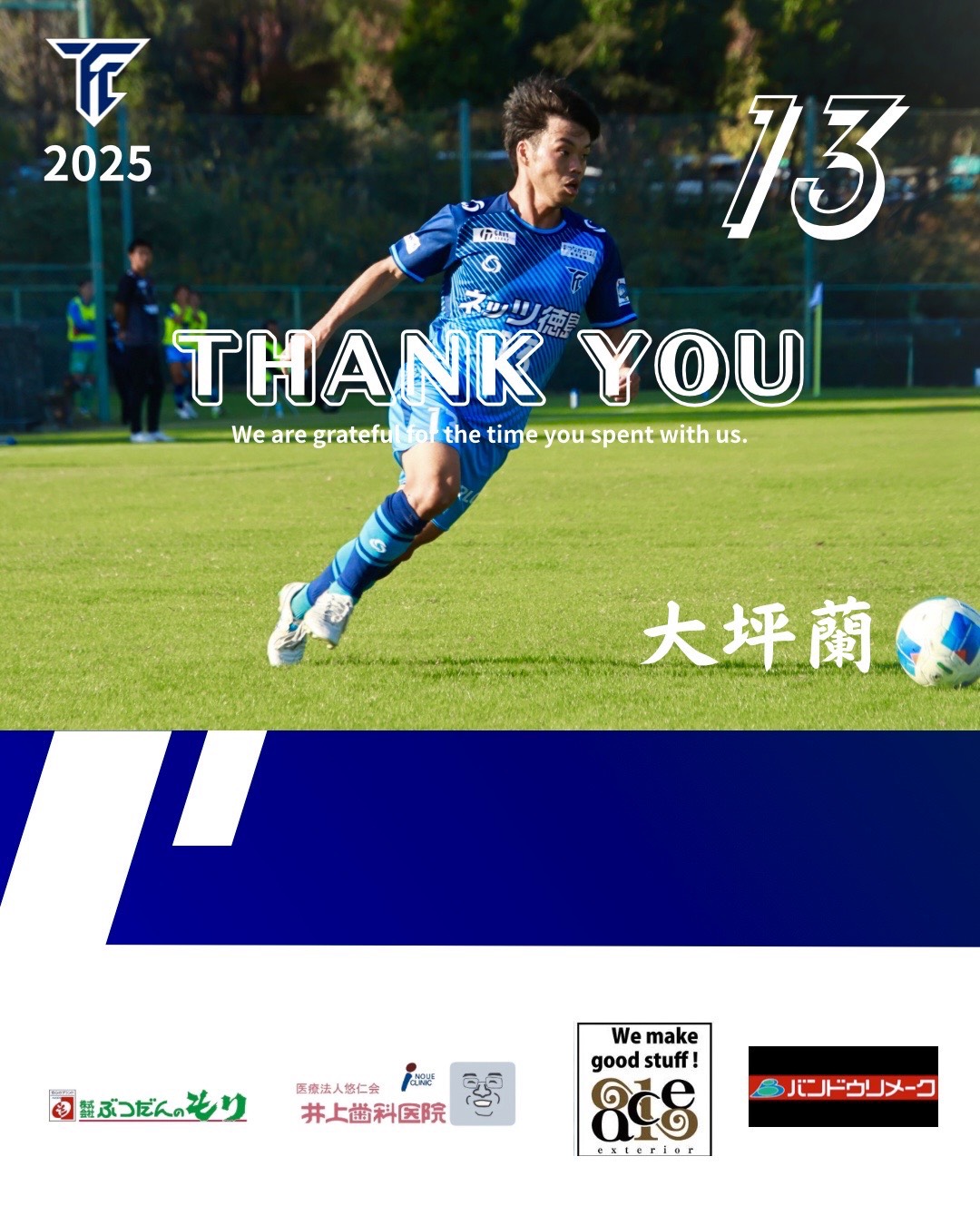 大坪蘭選手は契約満了に伴い2026シーズンの契約を更新しないことになりましたのでお知らせします。