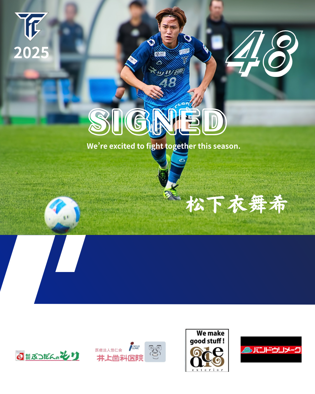 【松下衣舞希選手契約更新のお知らせ】 トップチーム 2025/12/29 松下衣舞希選手は育成型期限付き移籍期間延長により2026シーズンの契約更新しましたのでお知らせします。 🔵選手コメント🔵 日頃よりFC徳島に多大なるサポートをありがとうございます。2026シーズンもFC徳島でプレーする事になりました。徳島でのプレーは2年目になり、去年果たせなかったJFL昇格といった大きな目標に近づけるよう頑張って行きます!2026シーズンも応援よろしくお願いします。