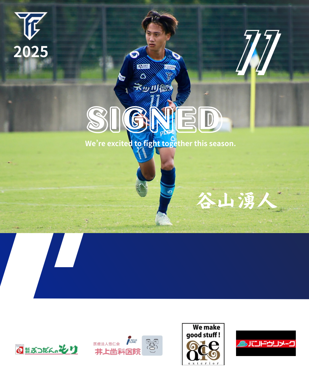 谷山湧人選手と2026シーズンの契約更新しましたのでお知らせします。